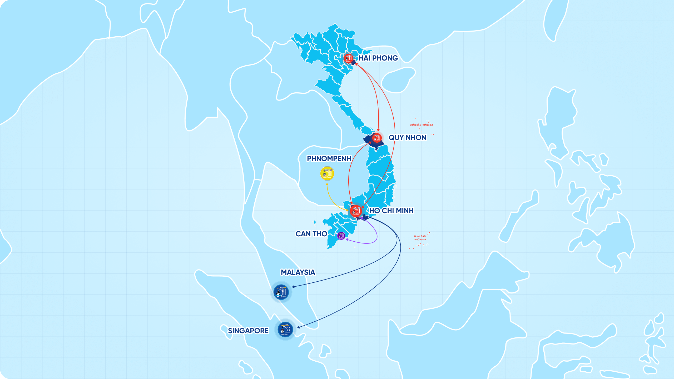 GSC sở hữu đội xe container mới, hiện đại, vận hành trên các tuyến Bắc – Nam và liên vận quốc tế sang Lào và Campuchia. Dịch vụ đáp ứng nhu cầu giao hàng nhanh, linh hoạt lịch nhận/trả, và tối ưu hóa khi kết hợp đa phương thức vận tải.