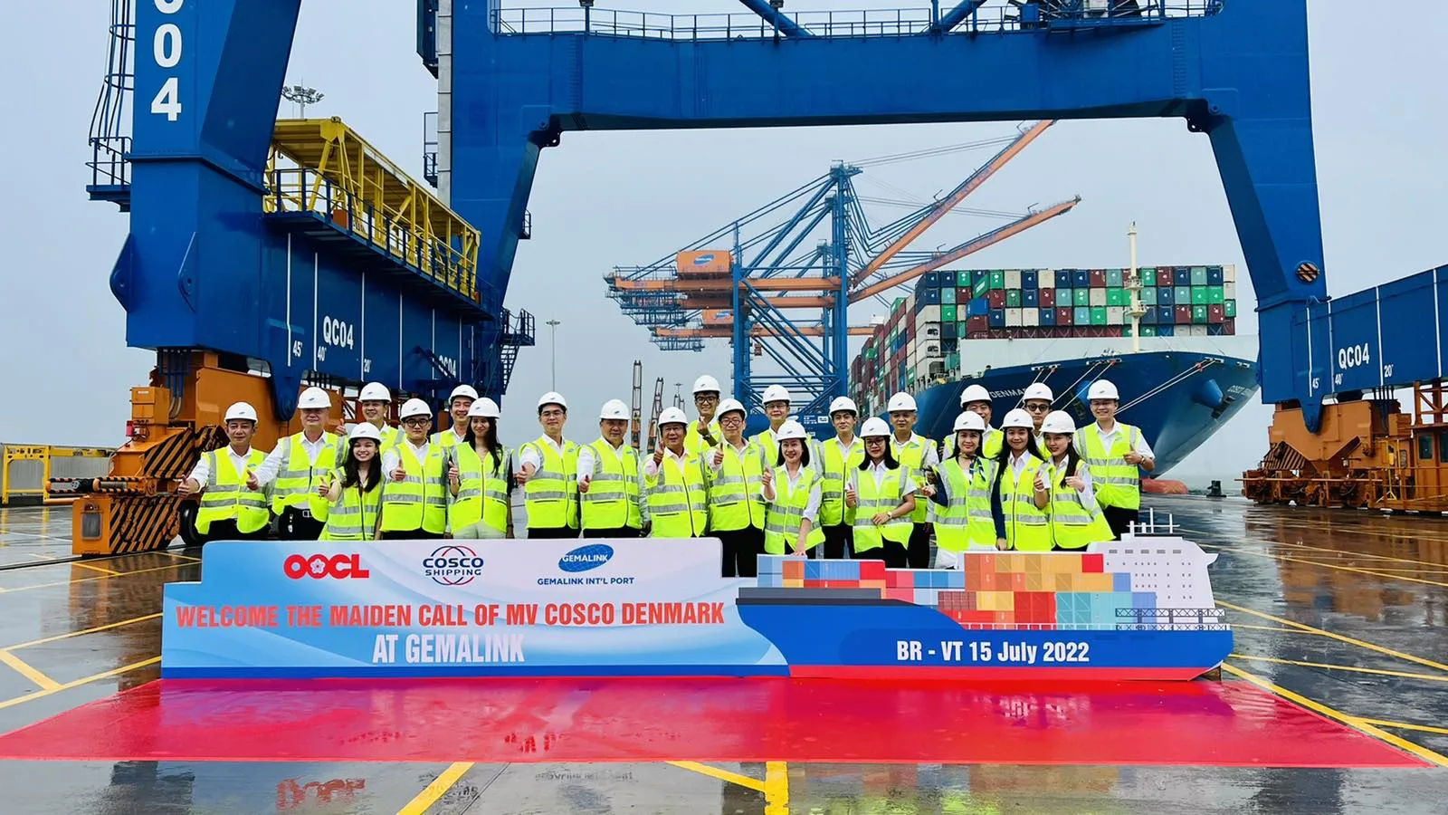 Ngày 15/7/2022, Cảng nước sâu Gemalink đã tổ chức Lễ đón chuyến tàu M/V COSCO DENMARK lần đầu tiên cập Cảng thuộc dịch vụ mới AEU7 của hãng tàu COSCO-OOCL