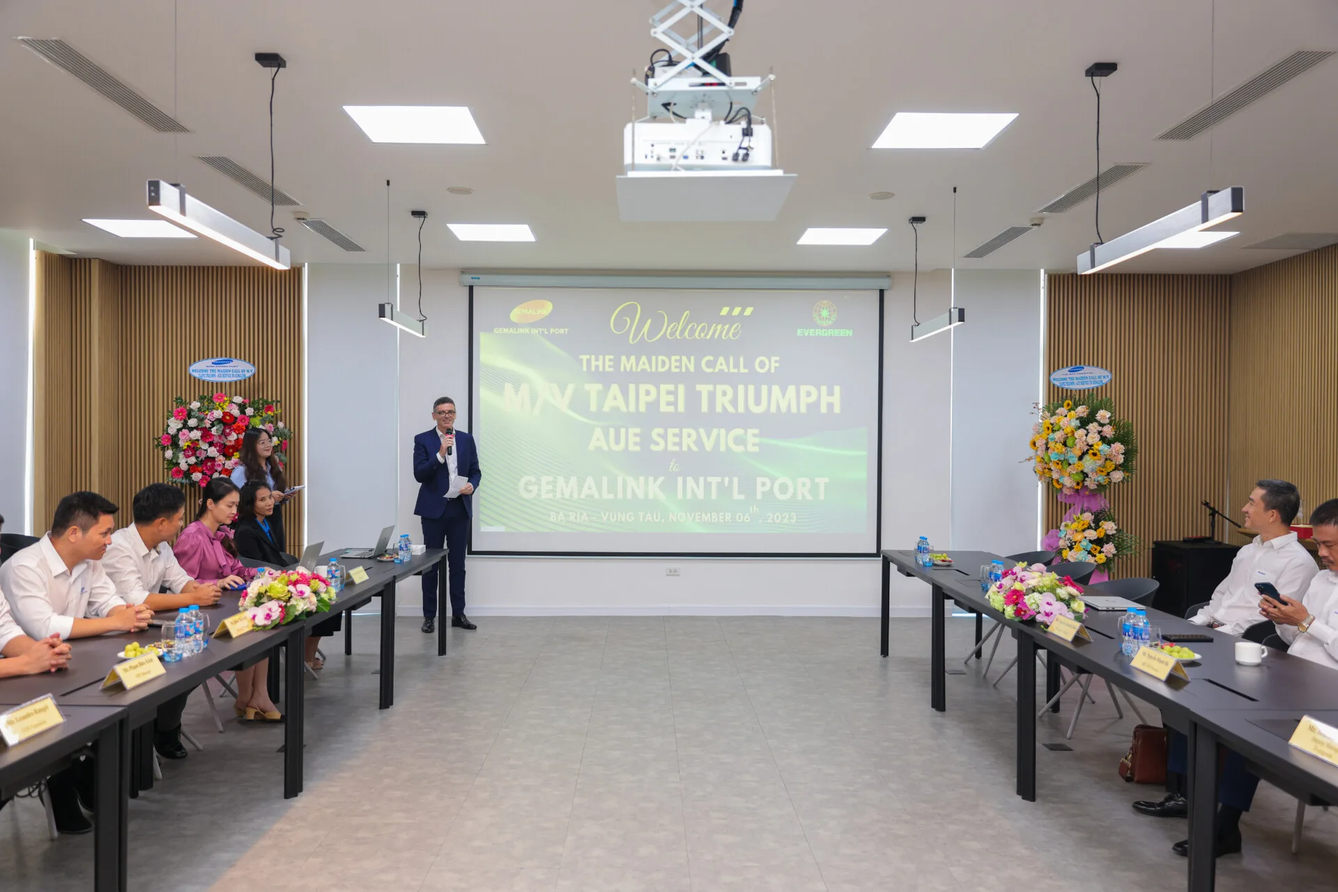 Gemalink was delighted to host a ceremony on November 6, 2023, with representatives from EVERGREEN Shipping Line to commemorate the inaugural arrival of the AUE service route, operated by the TAIPEI TRIUMPH vessel, at Gemalink on the afternoon of November 5, 2023