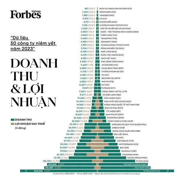 Các công ty niêm yết trên HSX và HNX được đánh giá qua nhiều giai đoạn để thực hiện Danh sách 50 Công ty niêm yết tốt nhất năm 2023. Ở vòng loại, các công ty phải đáp ứng các điều kiện: có lãi năm 2022, có doanh thu và vốn tối thiểu 500 tỷ đồng. Ở vòng tiếp theo, các công ty được đánh giá định lượng dựa trên 5 tiêu chí: doanh thu, lợi nhuận, tỷ lệ ROE, ROC và tốc độ tăng trưởng kép của tăng trưởng EPS giai đoạn 2018 – 2022 với sự hỗ trợ tính toán định lượng của công ty Chứng khoán SSI. Forbes Việt Nam sau đó tiến hành một nghiên cứu định tính để đánh giá sự phát triển bền vững của công ty bao gồm vị thế của công ty trong ngành, nguồn lợi nhuận, chất lượng quản trị công ty, triển vọng của ngành, v.v…