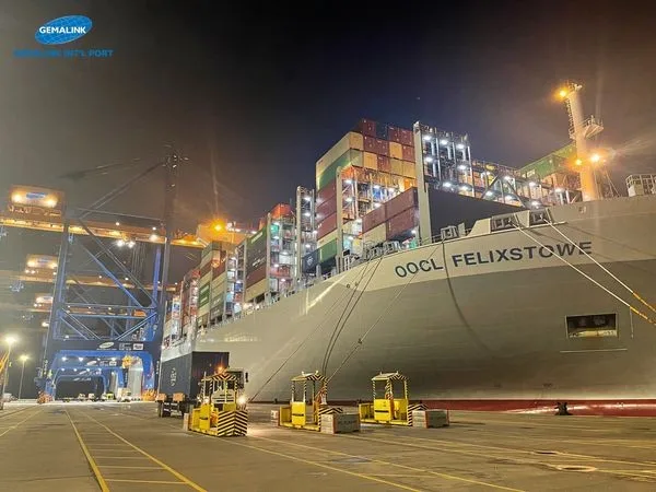 Tàu OOCL FELIXSTOWE được khai thác tại Cảng nước sâu Gemalink, lần thứ 4 Siêu tàu có sức chở 24,000 TEU của OOCL cập Gemalink vào ngày 3/9/2023 (3 Siêu tàu khác là OOCL SPAIN, OOCL PIRAEUS, OOCL TURKIYE).