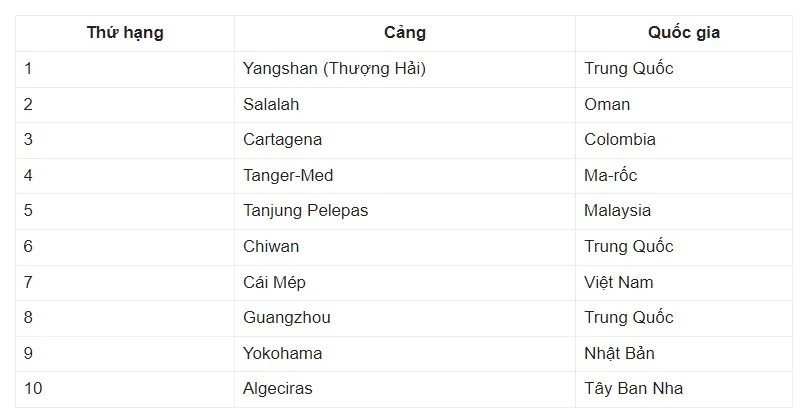 Năm nay, cụm cảng Cái Mép đã thành công nhảy vọt 5 bậc để lọt vào Top 7 cảng container hoạt động hiệu quả nhất thế giới